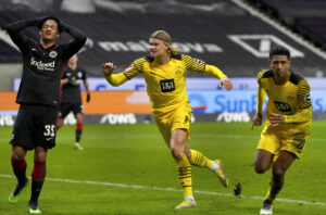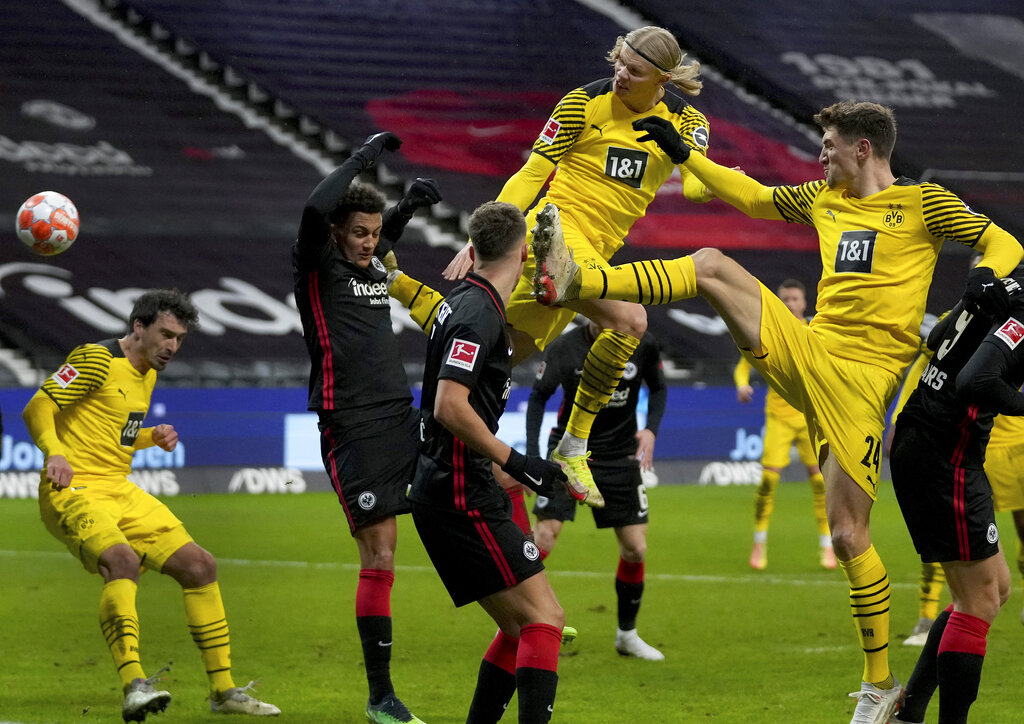 ในส่วนก่อนหน้านี้ รั้ง 3 อันดับแรก ได้แก่ ฮาร์แลนด์ รอยซ์ และมาเลน ขณะที่ตามหลังจ่าฝูงบาเยิร์น 9 แต้ม หนึ่งนาทีหลังจากเริ่ม ดอร์ทมุนด์ซึ่งเข้าใกล้เป้าหมายด้วยลูกยิงอันแข็งแกร่งจากมูเนียร์ ดันเข้ามา และแฟรงค์เฟิร์ตขึ้นนำ